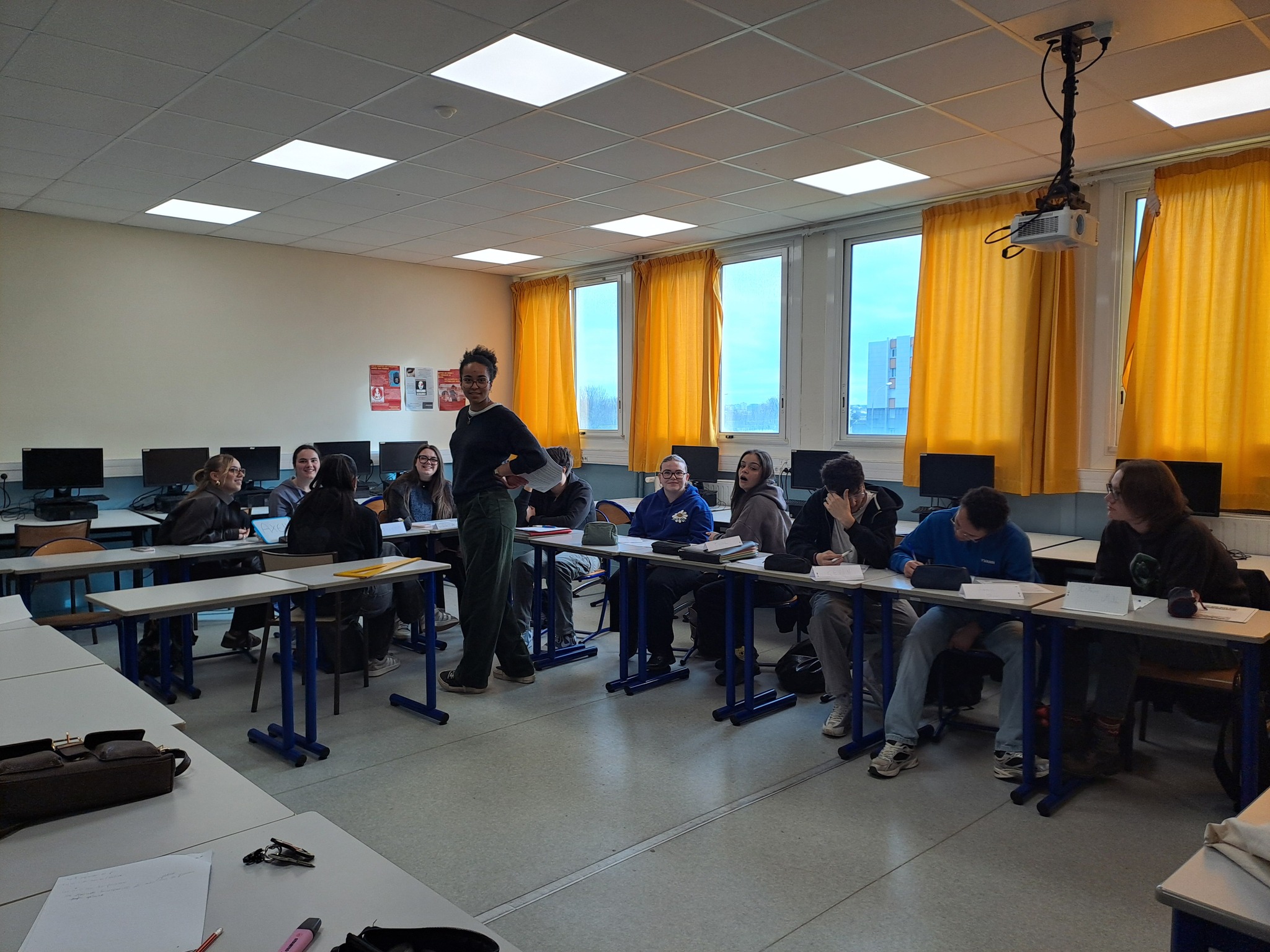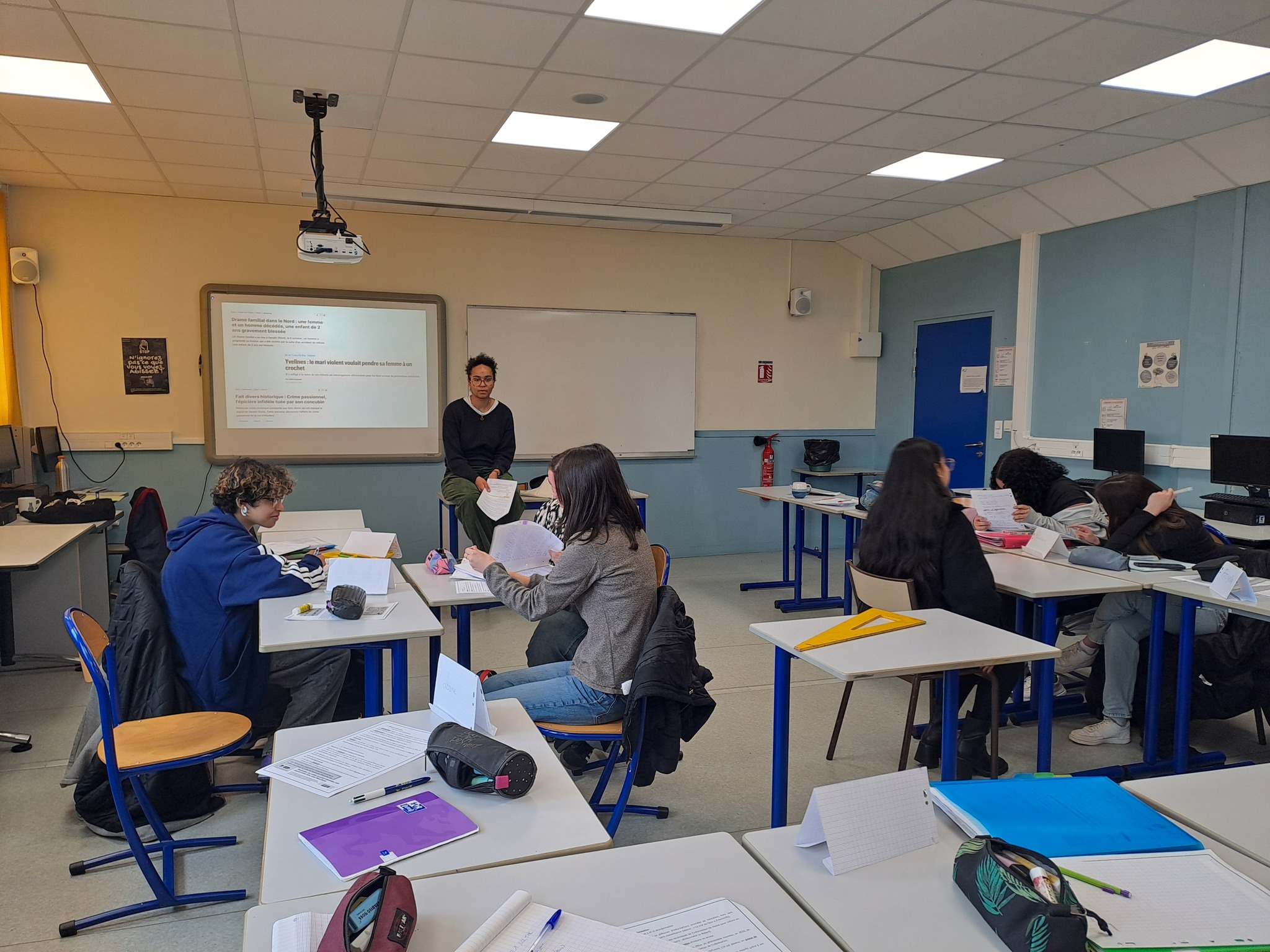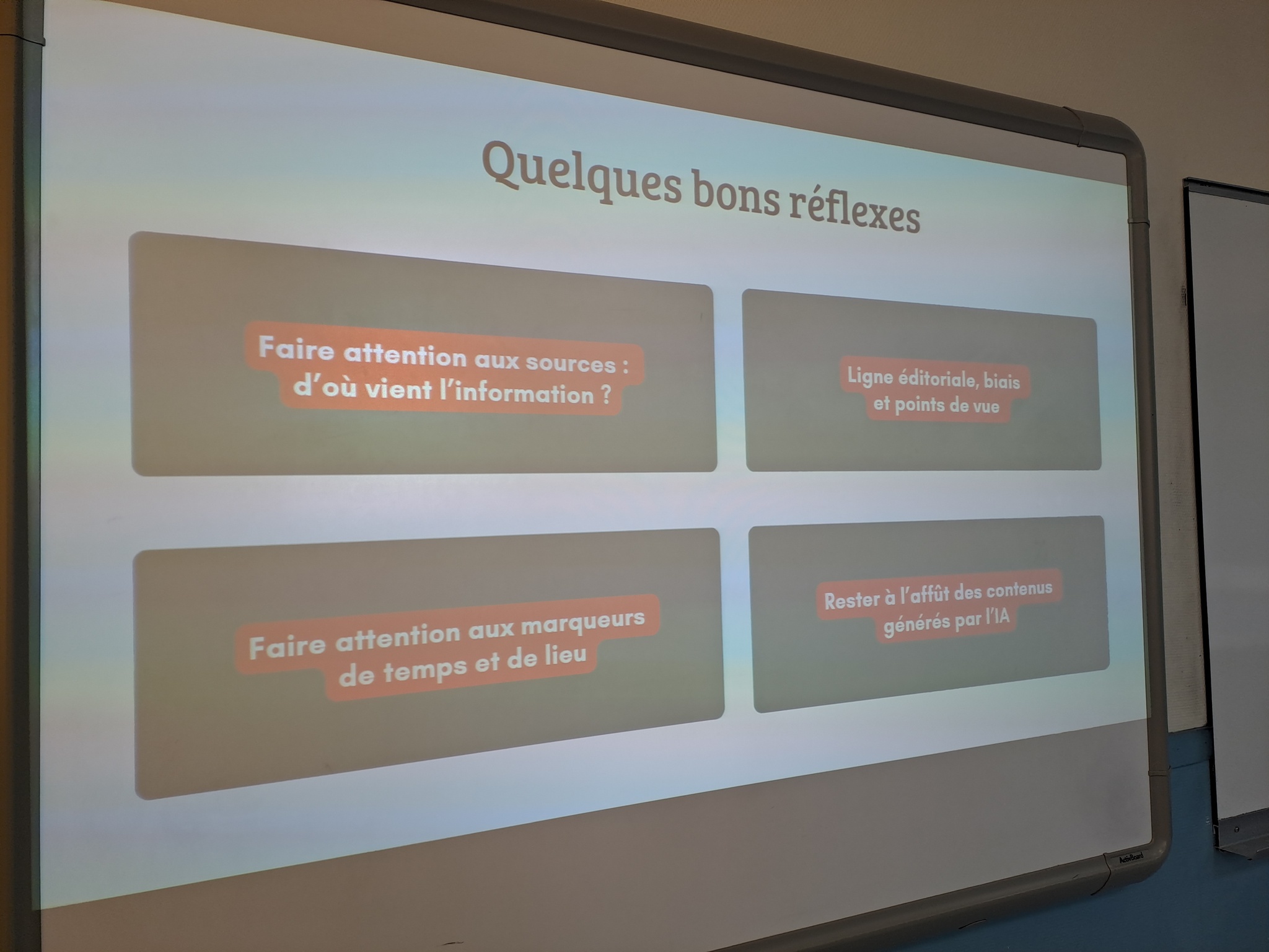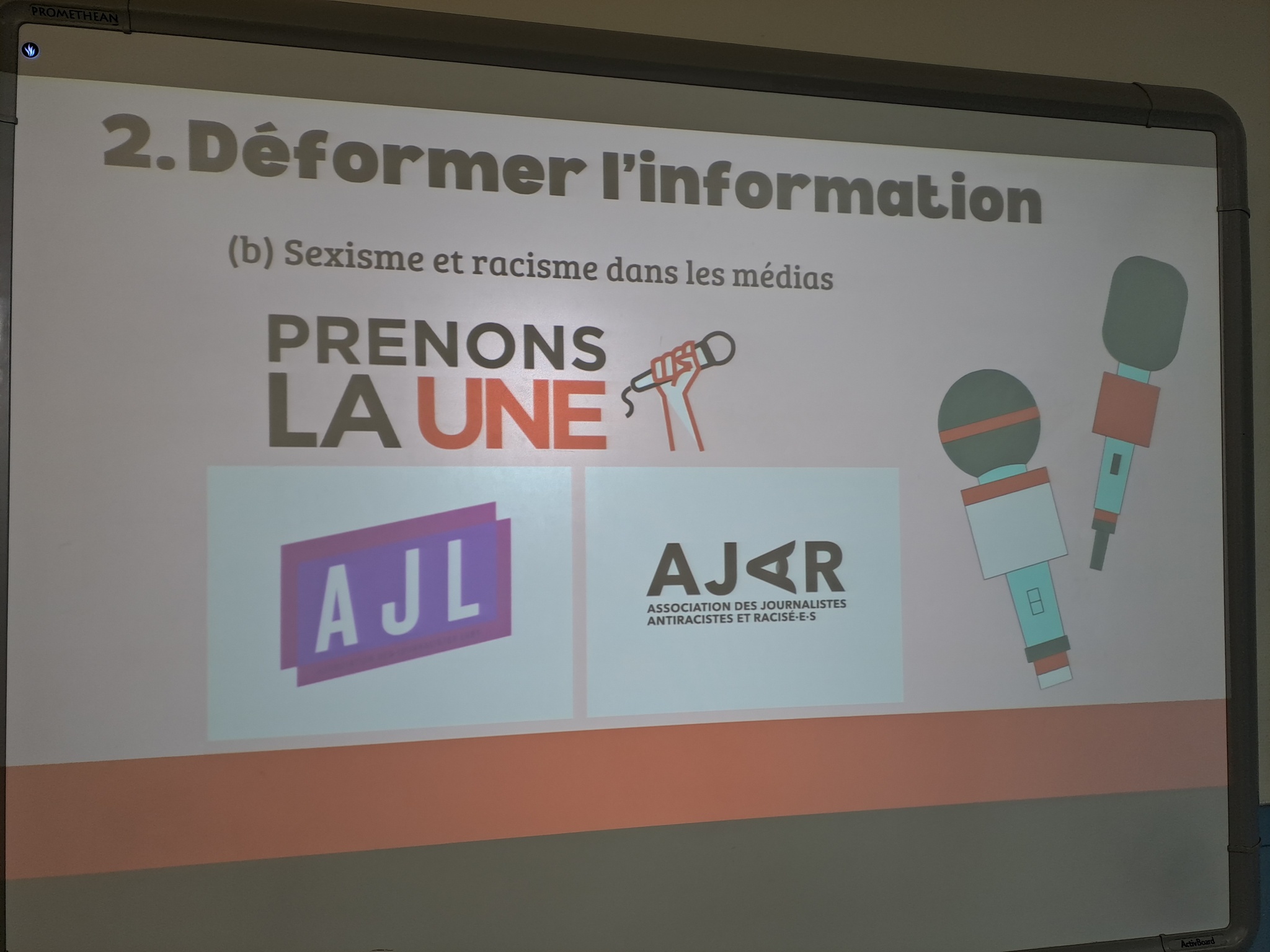 Dans le cadre de la semaine de la presse et des médias, Sarah, journaliste est intervenue dans une classe de terminale ST2S afin de montrer les enjeux d'une bonne information. Les élèves ont pu réfléchir durant 2 heures sur les sujets suivants: En tant que citoyen.nes, nous avons tous accès à l'information par plusieurs canaux différents. Aujourd'hui, les repères traditionnels sont brouillés. En soi, tout le monde peut poster une vidéo sur Internet ou publier un podcast. Alors, c'est quoi un.e journaliste? A quoi reconnaît - on un.e journaliste? Quelles sont les différences entre un journaliste et un influenceur?